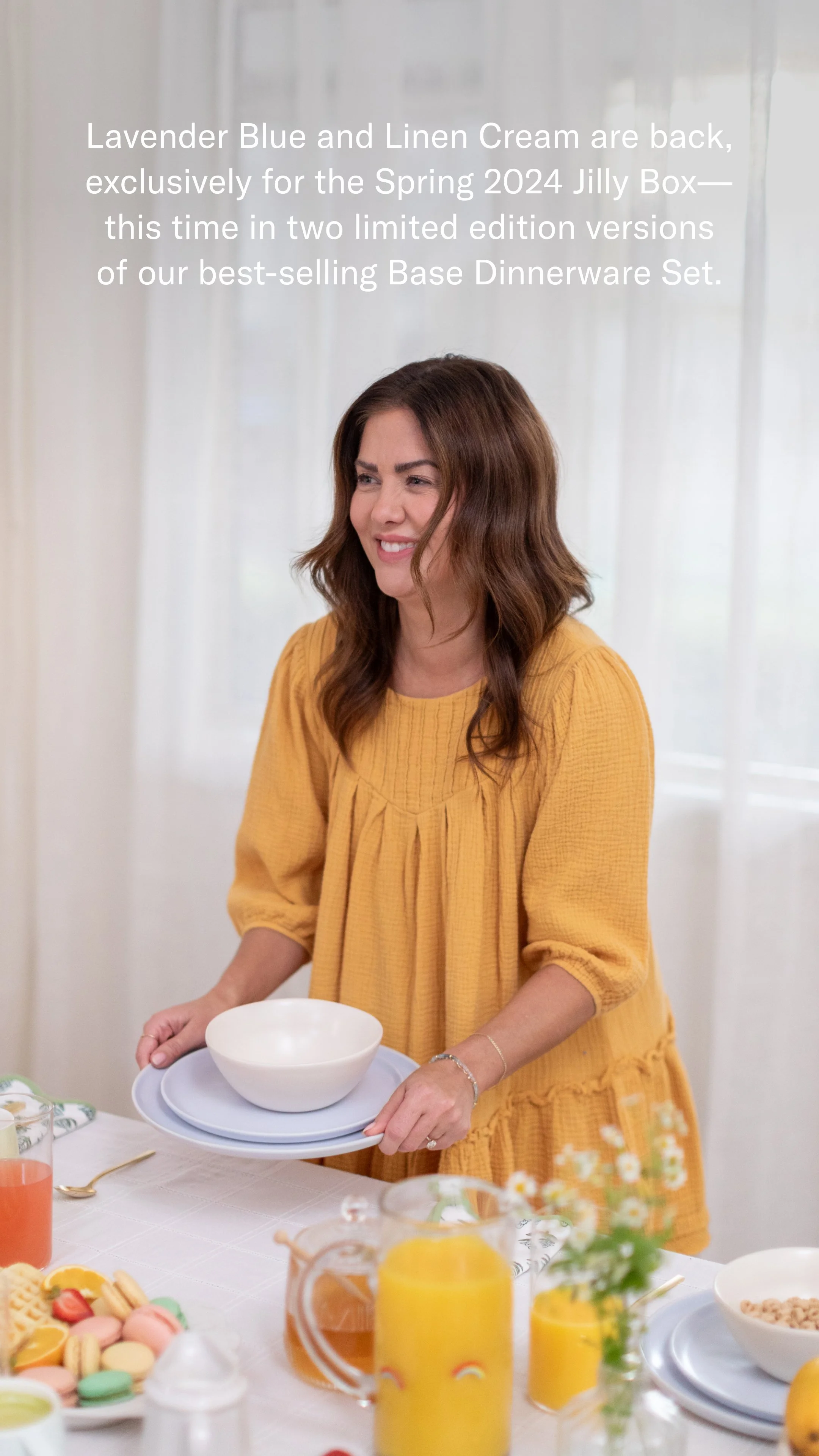 Fable, a brand known for its elegant dinnerware sets, collaborated with Jilly Box for their Spring 2023 edition, featuring custom limited edition hues of The Mugs in Lavender Blue and Linen Cream. This partnership was a strategic move to leverage Jilly Box's reach and engage with Jillian Harris' dedicated community. Building upon the success of the previous collaboration, Fable reintroduced the custom limited edition hues in their versatile Base Dinnerware Set for Spring 2024.