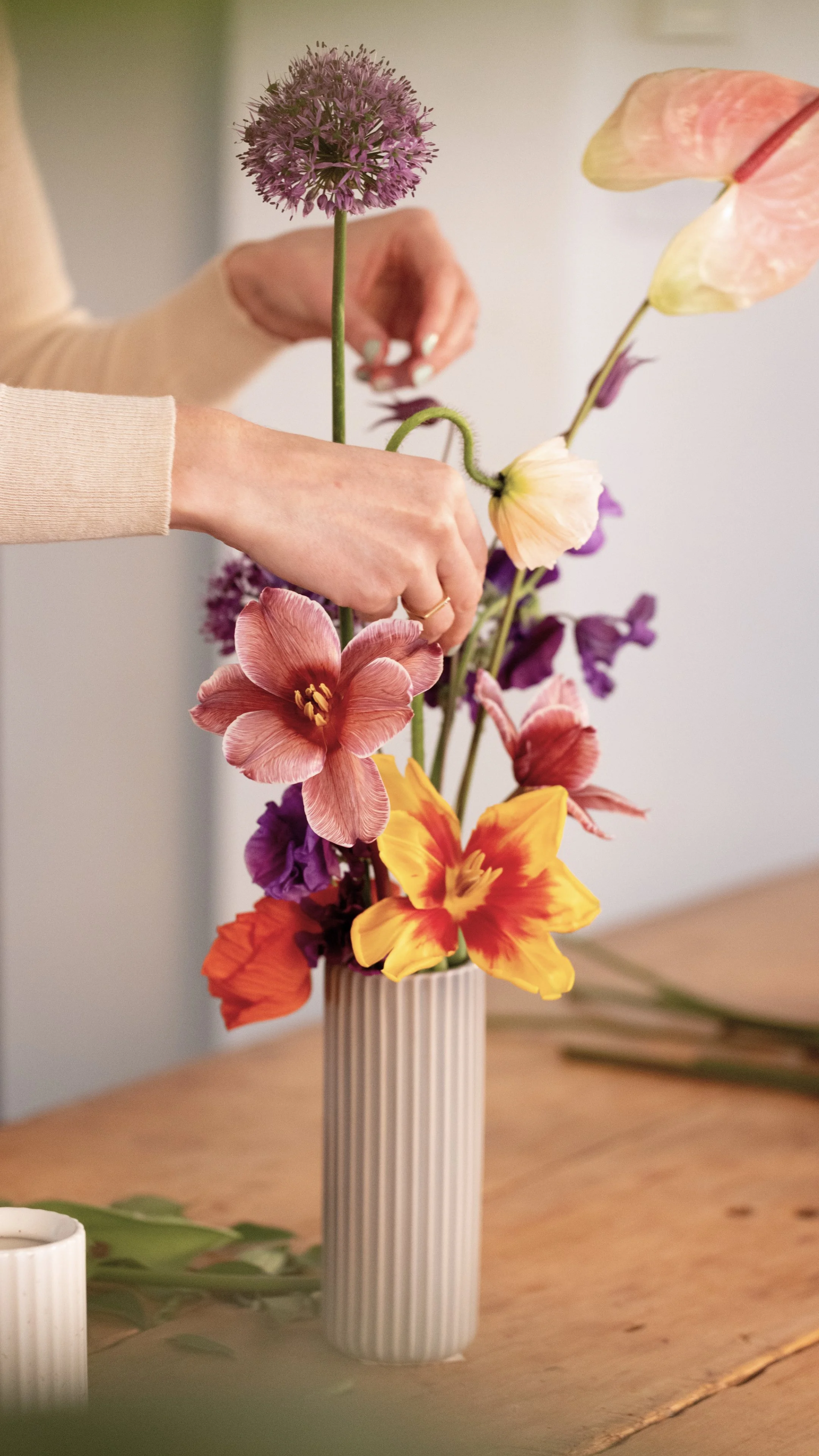 Floral design is a form of art. This rings especially true for Marta Sanderson, the owner and creative director of Vancouver-based La Bomba Floristry, whose unique, otherworldly arrangements are among the more breathtaking we’ve seen. For the launch of The Tall Bud Vase and The Short Bud Vase, we enlisted Marta’s help to teach the art of curating beautiful, flower-forward arrangements in each vase.