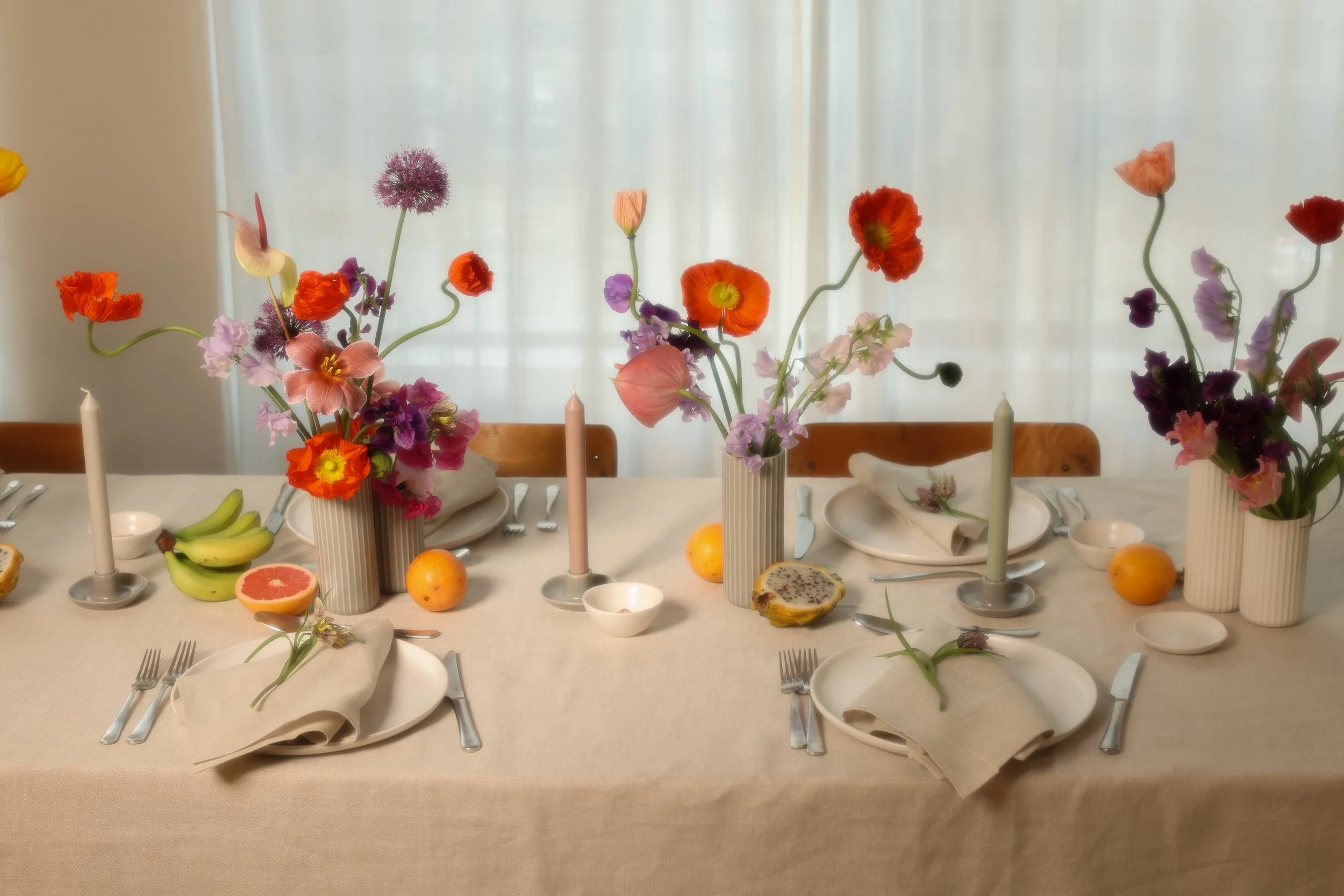 “I like to play with intrigue and the unexpected. Two arrangements side by side should never be the exact same. Nature doesn’t work like that. Look at the rose bushes in the summer—how gloriously differently they all chase the sun.”